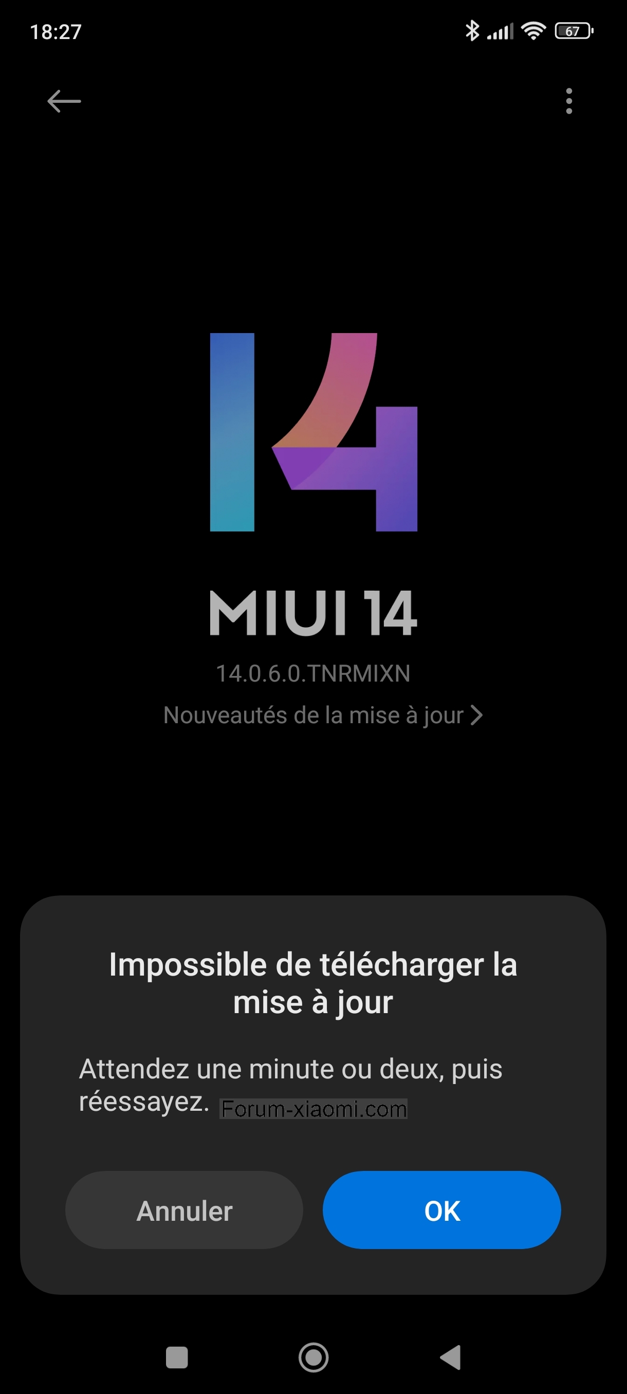 _ Serveur OTA inaccessible ou ROM non officielle : Xiaomi peut bloquer les mises à jour pour les ROM modifiées ou trop anciennes.